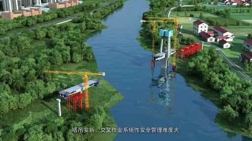 不光如此,安全管控的细节也被玩明白了。塔吊群作业环节,动画给每台塔吊标上动态安全范围,高度、角度、风速等数据实时悬浮弹窗,一旦接近安全阈值,红色防撞预警线立刻闪烁,多设备联控的逻辑一眼看透;挂篮智慧监控也不示弱,挂篮行走的同步性、荷载平衡的细微变化,都用动态图标直观呈现,哪怕是刚入行的新员工,看一遍动画也能 get 到风险点,比啃几天图纸高效多了。